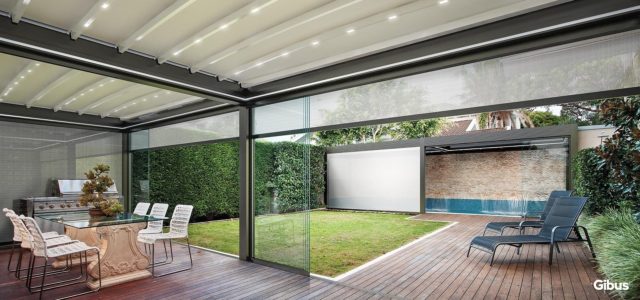 Med Azimut est une pergola en forme, avec couverture pliable de la gamme Pergolas à 90° de Gibus.